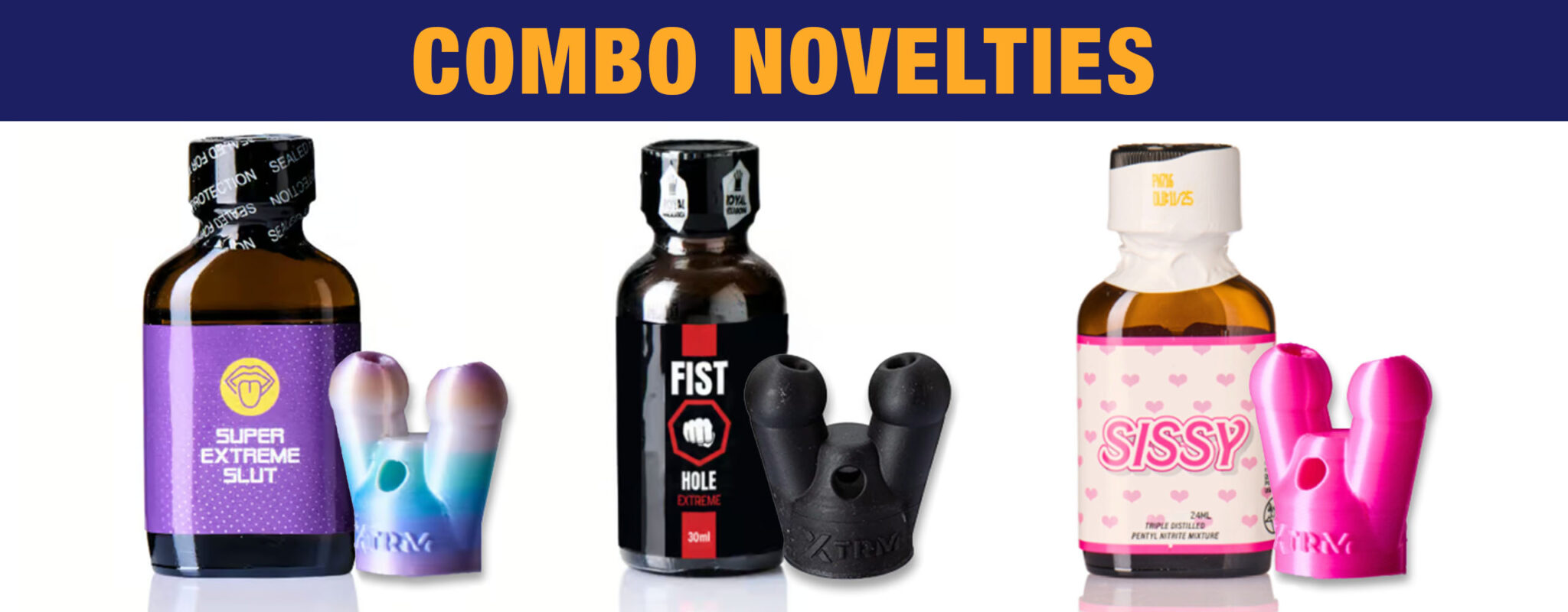As you know, we do not believe in one-size-fits-all poppers. Sexual growth is a journey, and so is kink. These combos are gentle nudges (or pushes) in a direction you may already be exploring. So why not show it? The names of these combos are not subtle, and they were never meant to be, so read them with a kinky smile, and step into your role.