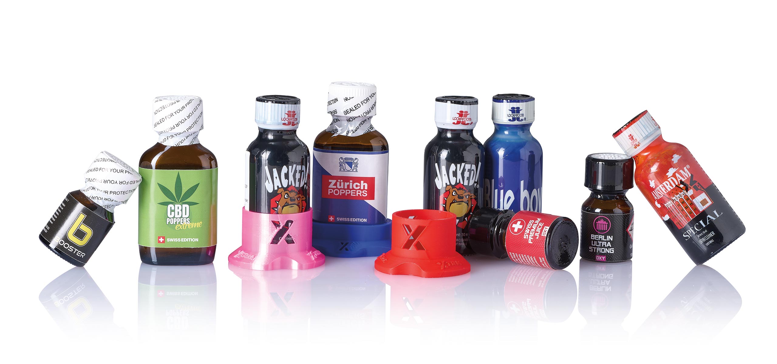Thanks to our many years of experience in the poppers trade, we have contact with the most renowned manufacturers of the strongest poppers worldwide. In our range you will find the best poppers from Lockerroom, Shelbora, PWD SA, Oxymoron AG, Brutus and many more.