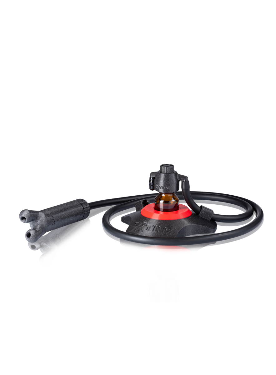 Scope of delivery: Banger Station, insert in red for the selected bottle size, bottle attachment with two connections, sealing cap for the second connection, hose (1m) with the fixed Double Sniffer.