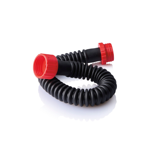 XTRM rubber hose red 50 cm. A solid hose for a gas mask is a must-have for every fetishist. With this rubber hose for the XTRM Rubber Mask or a conventional gas mask, you can come up with more play possibilities for your fetish games or your poppers sessions. The XTRM rubber hose is equipped with red threads. These fit standard gas masks (e.g., Israeli or Russian models) as well as the XTRM Rubber Mask. The threads are rotatable, which prevents the hoses from twisting. You can connect as many hoses as you like and attach them to couplers, other masks, or filters. The red connection adds a splash of color, for example, to a rubber outfit, allowing you to create your unique look. The material of the corrugated hose is made from soft plastic. Hose length without threads: 50 cm. The XTRM hoses are a clear improvement in terms of durability and reliability. They also allow for wet play, are extremely break-resistant, and feature a bizarrely sexy style. The shiny look generates a fascinating aura that instantly draws attention.